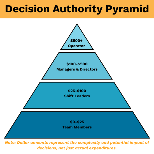 $25-100 impact decisions: Shift leaders (scheduling changes, larger guest issues, minor equipment decisions)
