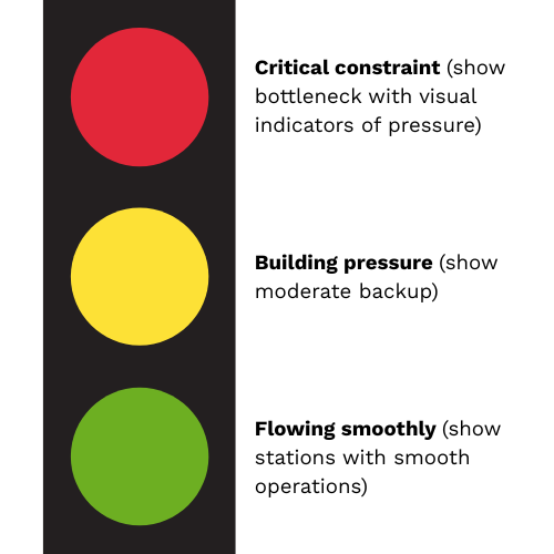 Post-shift debrief: "Let's walk the bottleneck—where did it begin, how did it move, and what could we do upstream to prevent it next time? This isn't about blame—it's about flow."